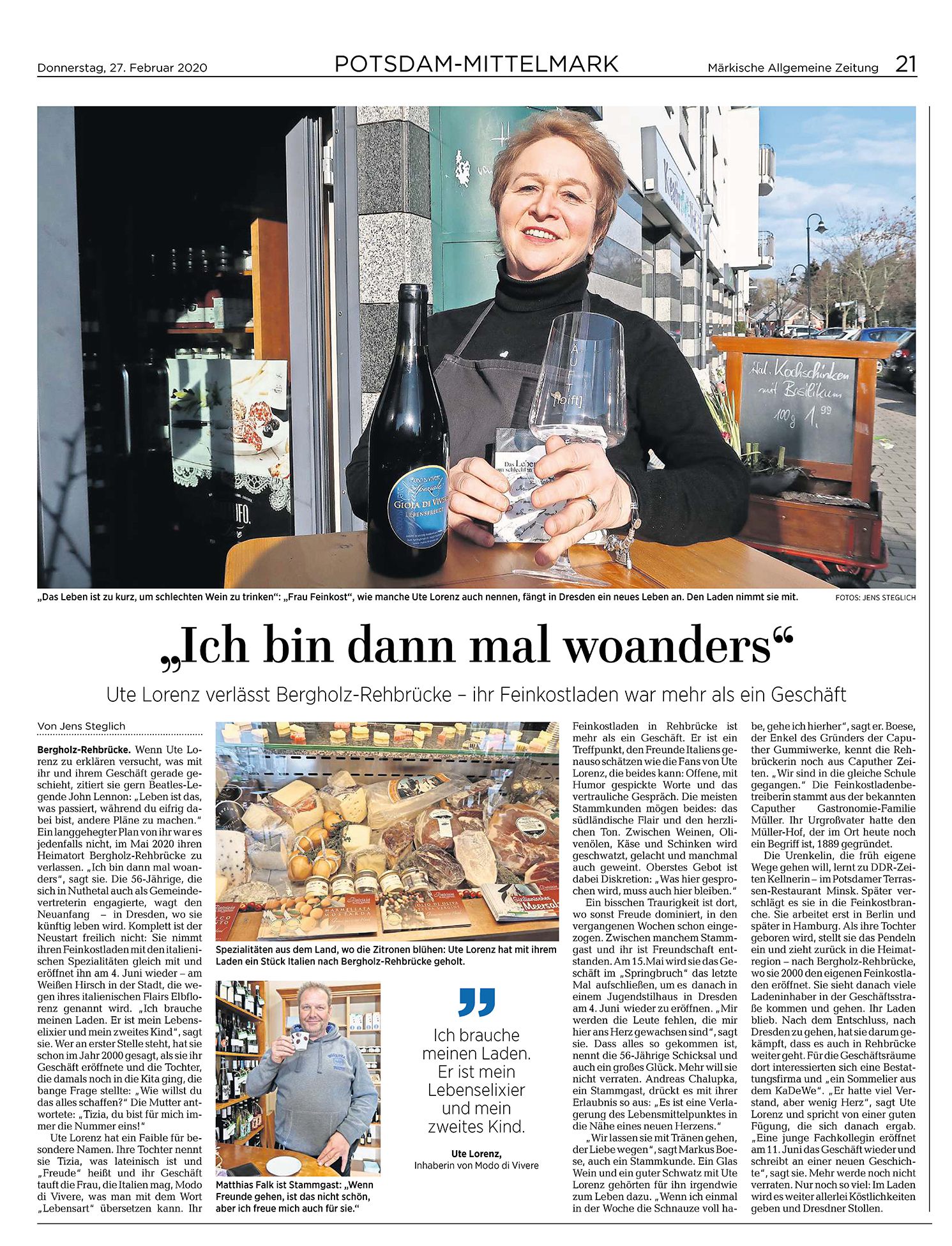 Ich erzählte von meinem Umzugsplan. Das fasste er in Worte und ließ sie am 27. Februar 2020 in einem Artikel in der "Märkische Allgemeine Zeitung" veröffentlichen.