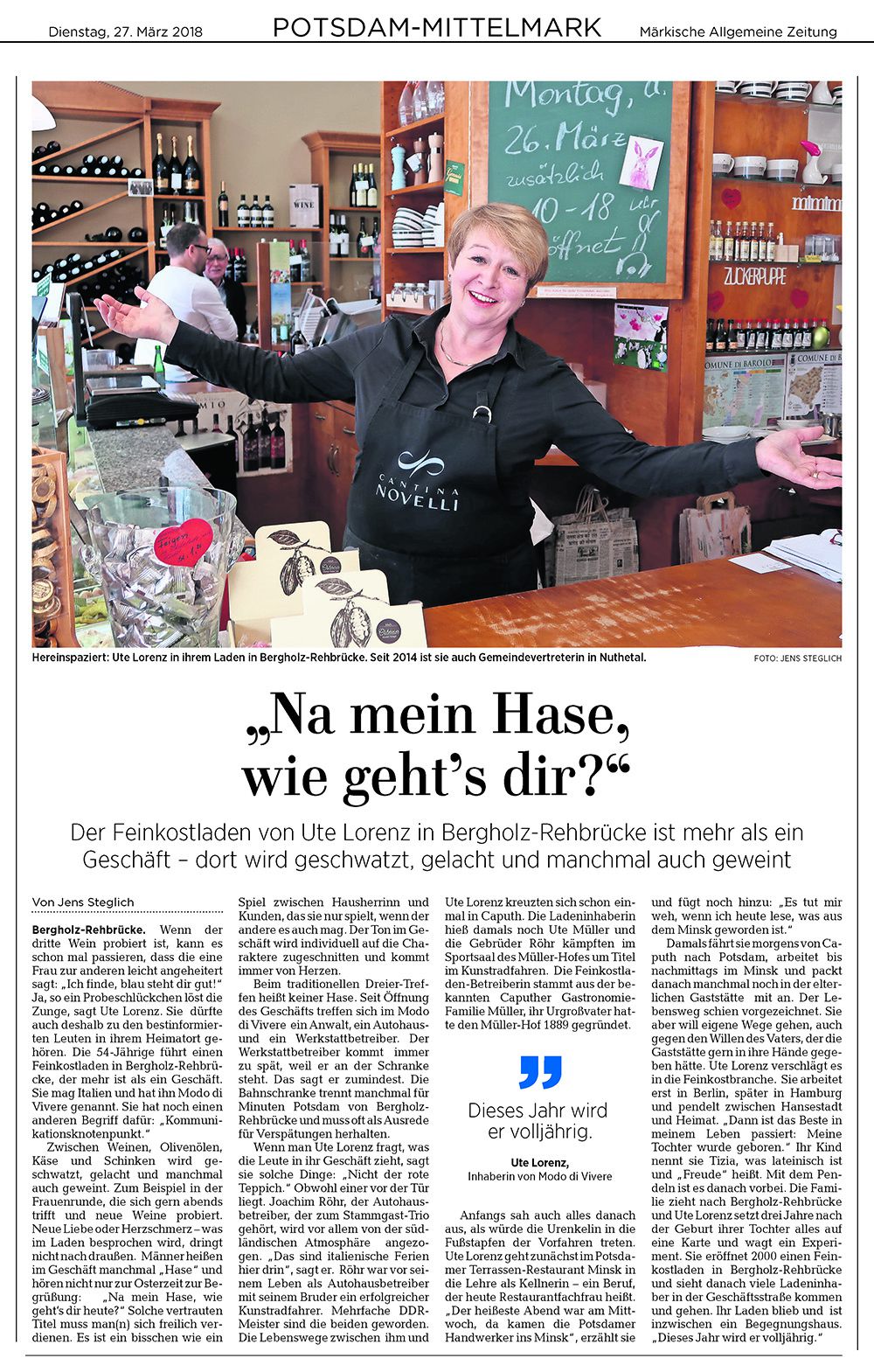 Ende März 2018 besuchte mich Jens Steglich von der MAZ in meinem Laden in Rehbrücke (Nuthetal).